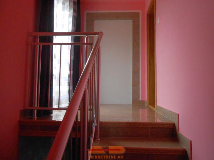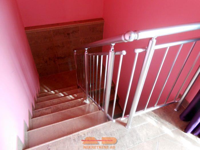 Unutarnje stube presvučene u visokokvalitetan polirani grest (mramor), sa ručno izrađenim rukohvatima, vode na kat.