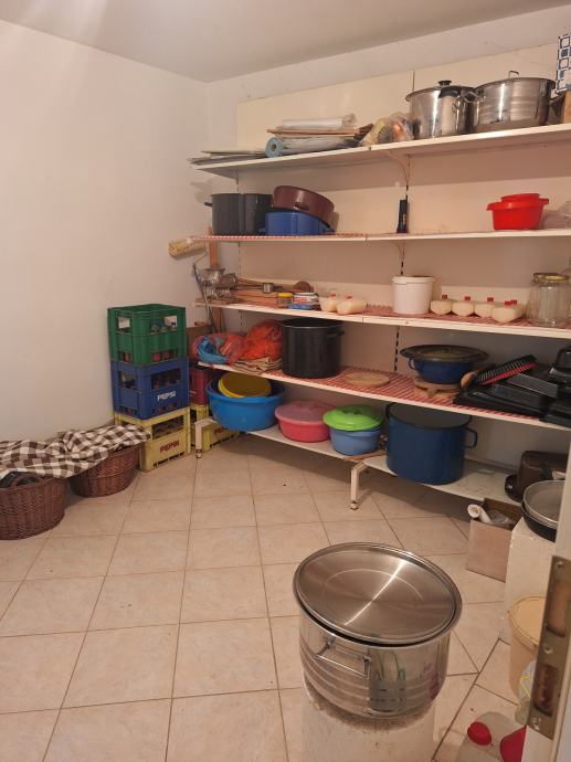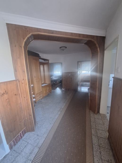 Sastoji se od dugačkog hodnika iz kojeg se ulazi u sve prostorije u kući; kuhinja s blagovaonom, boravak, tri sobe, kupaonica, podrum, ostava.