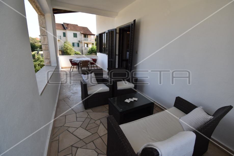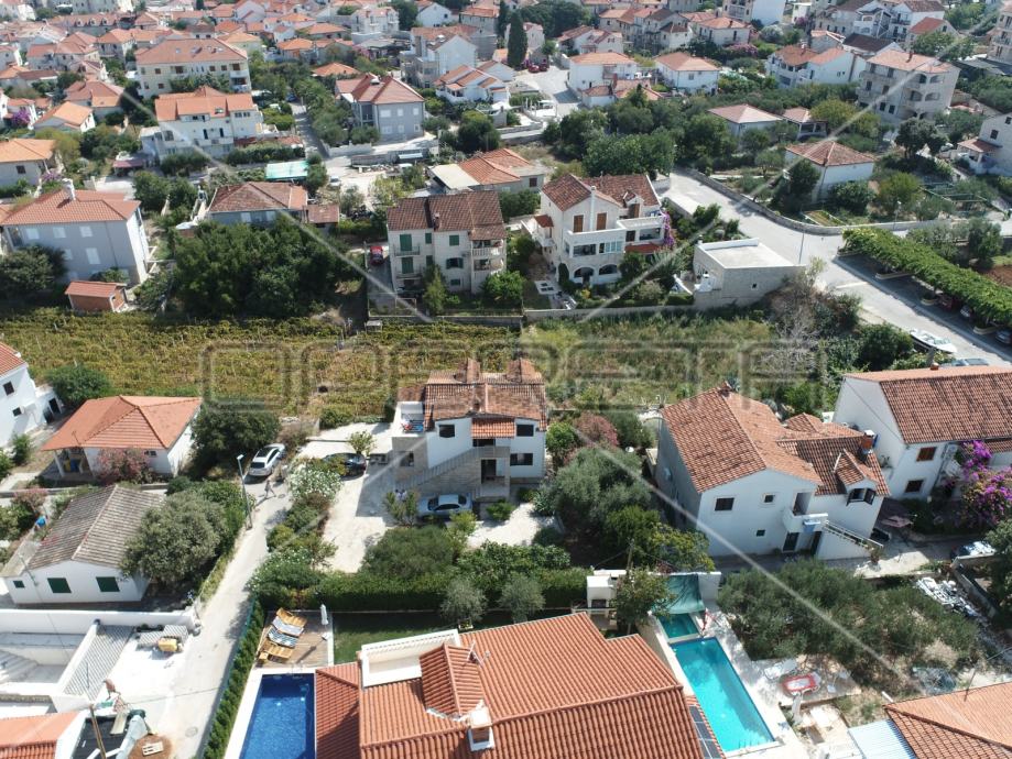 Postojeća zgrada sastoji se od dvije samostalne stambene jedinice (apartmana), svaka s 2 spavaće sobe, kupaonicom i prostranim dnevnim prostorom s kuhinjom i blagovaonicom. Svaka jedinica ima vlastiti ulaz te izlaz na terasu ili balkon s djelomičnim pogledom na more. Gornja terasa pruža neometan i spektakularan pogled koji se proteže od Splita, preko Dugog Rata pa sve do daljine. Prizemlje uključuje i tri dodatne prostorije, uključujući i onu smještenu ispod stubišta, koje se mogu prenamijeniti u pomoćne sadržaje (recepcija, spremište, wellness zona, ured…).