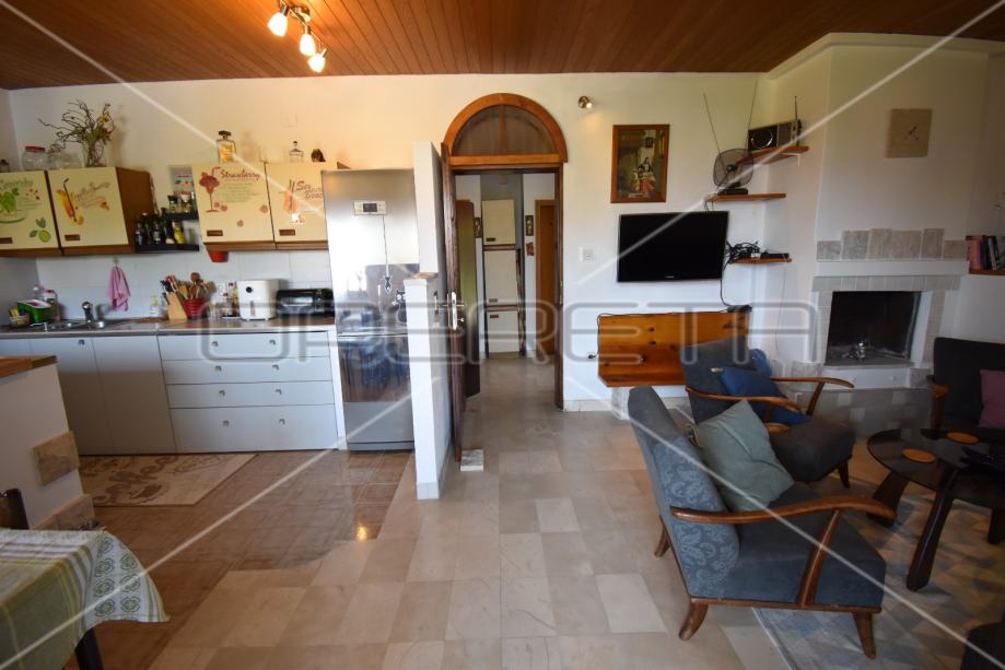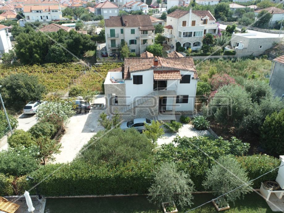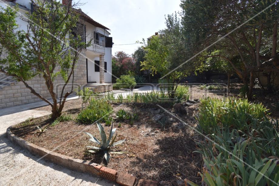 Oko kuće se prostire kultivirani vrt s maslinama, smokvama, oleandrima i mediteranskim raslinjem, dok se s jedne strane parcela graniči s poljoprivrednim zemljištem (vinograd), što dodatno jamči mir i pogled koji ostaje netaknut.