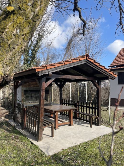 Prodaje se kuća za odmor u Aljmašu na placu površine 651m2. Kuća se sastoji od prizemlja, kata i potkrovlja. U prizemlju se nalazi hodnik, ostava, kuhinja sa blagovaonicom. Na katu se nalazi hodnik, kupaonica i dnevna soba a izlazom na terasu. U potkrovlju se nalazi spavaća soba i WC. Ukupne površine cca 80m2. Uz kuću je pripadajuće ograđeno dvorište, sjenica sa ostavom i voćnjak (u rodu- Viljamovka, jabuka, kajsija). Dvorište i voćnjak su uređeni i održavani. Orijentacije istok/zapad. Pogled na Dunav. Kuća je kompletno renovirana 2024 g., nova stolarija, keramika, krov, instalacije, ograda, klima, izolacija, protuprovalna/protupožarna vrata, priključci (Internet)... Predviđen prostor za izgradnju bazena i jacuzzia.