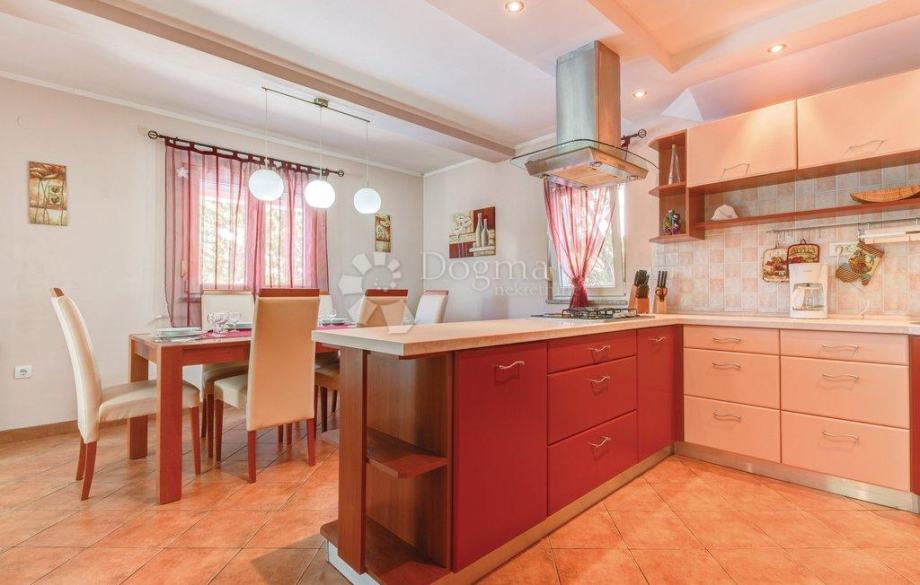 Na prodaju je obiteljska kuća za odmor s bazenom smještena na 5 km udaljenosti od središta Pule, popularnog turističkog mjesta u Istri. Kuća se nalazi na parceli od 464m2, a njena površina iznosi 206m2. Građena je 2007. godine te se proteže na dvije etaže.