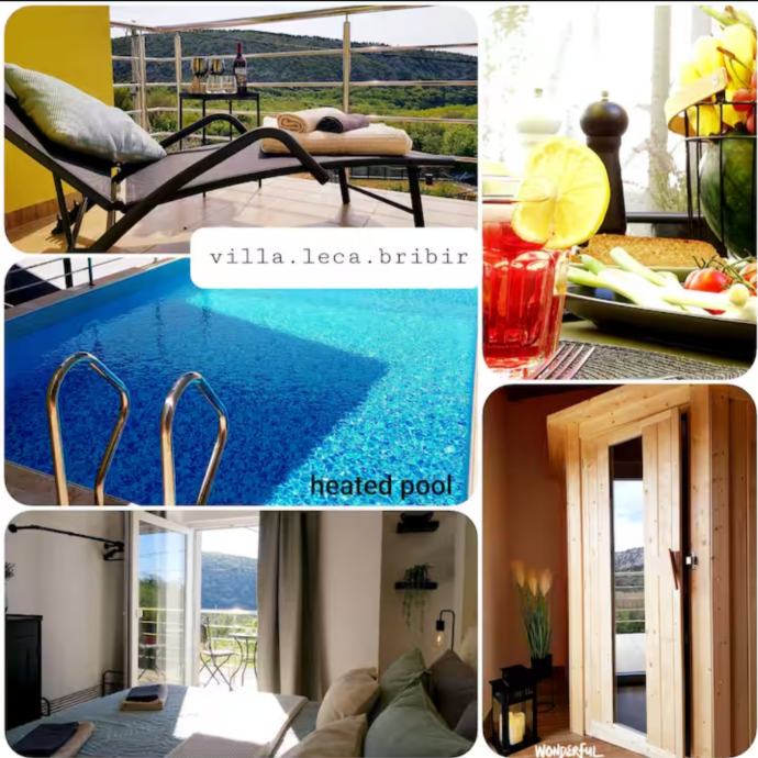 novo renovirana velika kuća za odmor sa saunom i grijani bazenom, 4 prostrane spavaće sobe, 5 kupaonice, 1 gostinjski WC, 2 parkirani mjesta, 4 klima uređaja, peć na pelete, velika potpuno opremljena kuhinja, 4 balkona sa pogledom, natkrivena terasa, sunćana terasa, visokokvalitetni namještaj, mogućnost odmah najma, postojeće rezervacije za 2026, iznimne recenzije