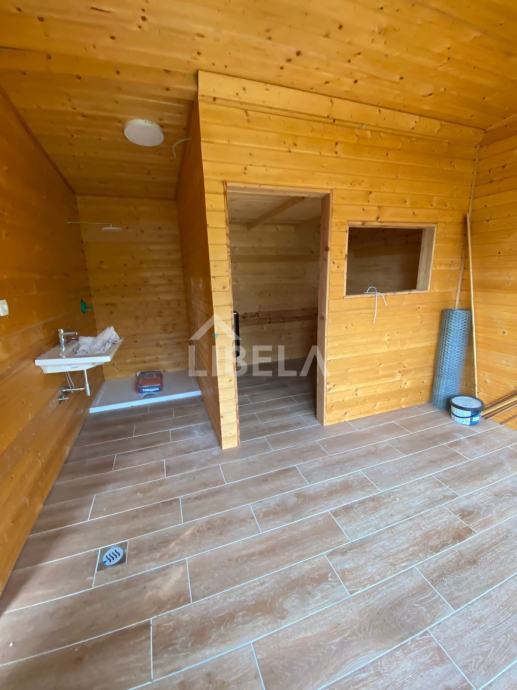 Grijanje kuće je na peć na kruta goriva, unutarnja i vanjska stolarija je drvena. U dvorištu kuće nalazi se sauna od 30m2 te vanjska natkrivena terasa tzv. sjenica.