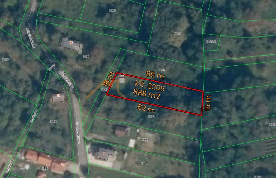 Ukupna površina parcele iznosi 888 m2