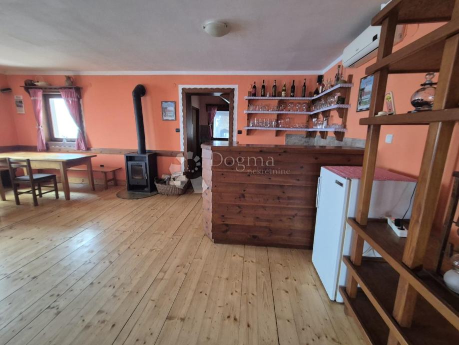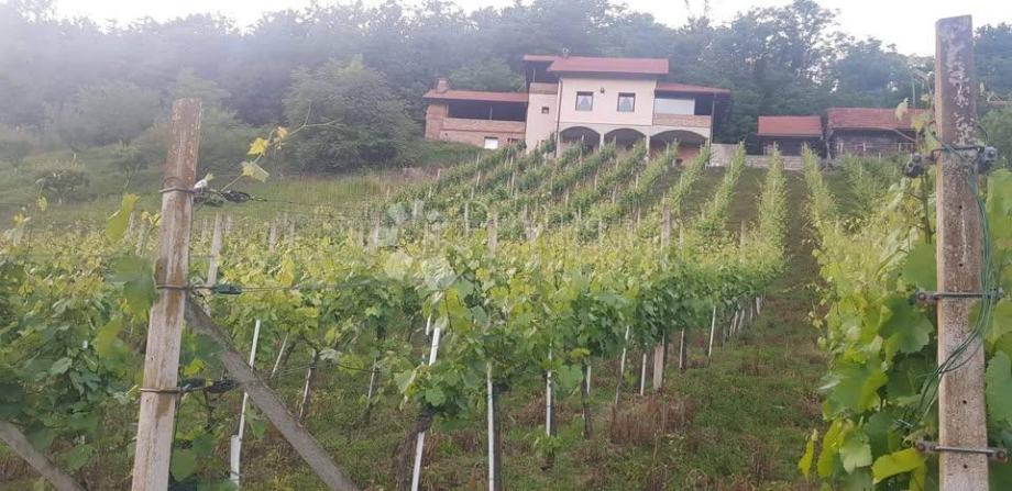 Kuća tlocrtnih dimenzija 20,85 x 7,6 m, ukupne bruto površine 222 m², prostire se na nekoliko parcela od cca 6500 m² koje se prodaju neodvojivo, ispred se nalazi parking. Najveći aduti ove nekretnine su tri prostrane terase s kojih se pruža spektakularan pogled na vinograd sa 700 čokota i okolnu šumu.