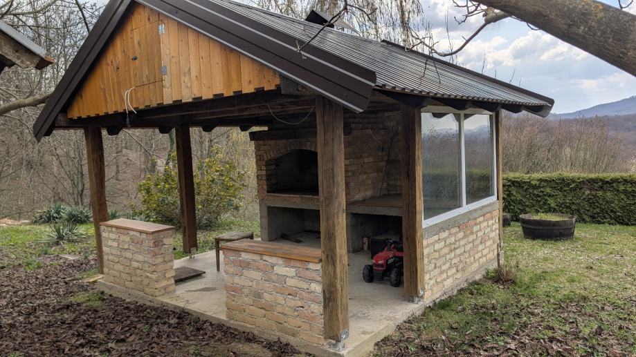 Da ne duljimo oglas, spojena je struja i voda, ispod vikendice je podzemni podtum koji vrlo dobro hladi u ljeti, parkiraliste za 4-5 automobila, vanjska pecenjara i nadstresnica sa masivnim stolom i stolicama. Na vikendicu se vezu jos 3 dodatna objekta koji trenutno sluze kao spremista ali mogu biti vise od toga zbog svojih dimenzija.