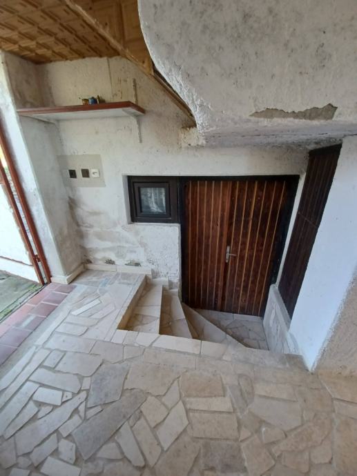 Iza kuće je manja pomoćna prizemna zgrada u kojoj je spremište i natkriveni prostor.