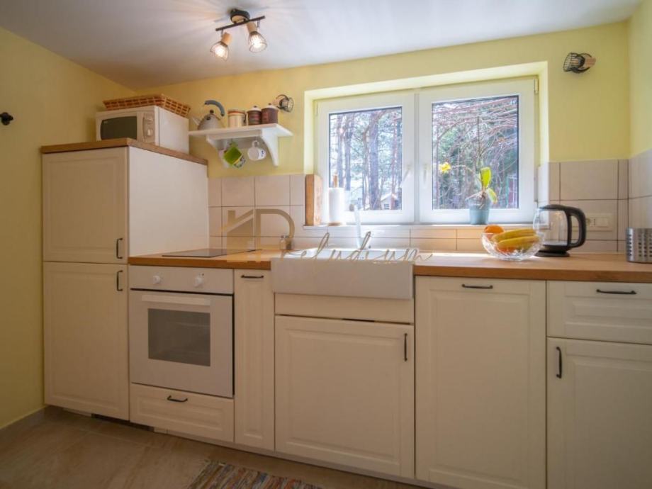 Kuća je opremljena podnim grijanjem i centralnim grijanjem na pelete, što osigurava ugodan boravak tijekom svih godišnjih doba.
