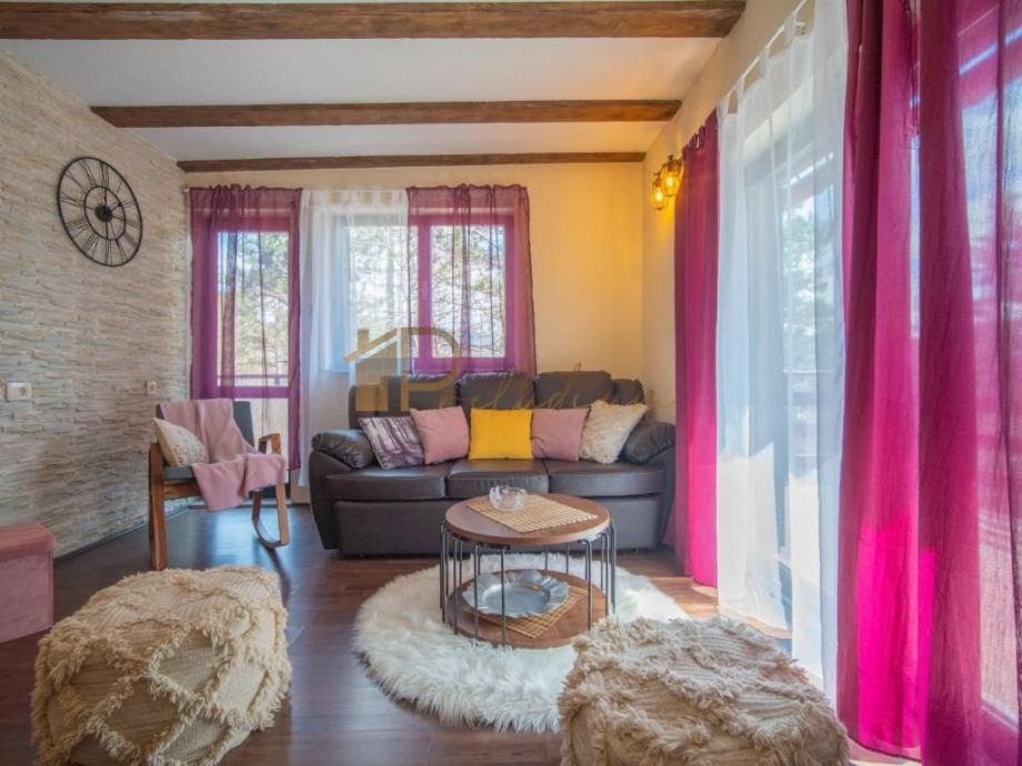 - Prvi kat: dnevni boravak s kaminom koji stvara poseban ugođaj u zimskim mjesecima, kupaonica i dvije terase za jutarnju kavu u tišini