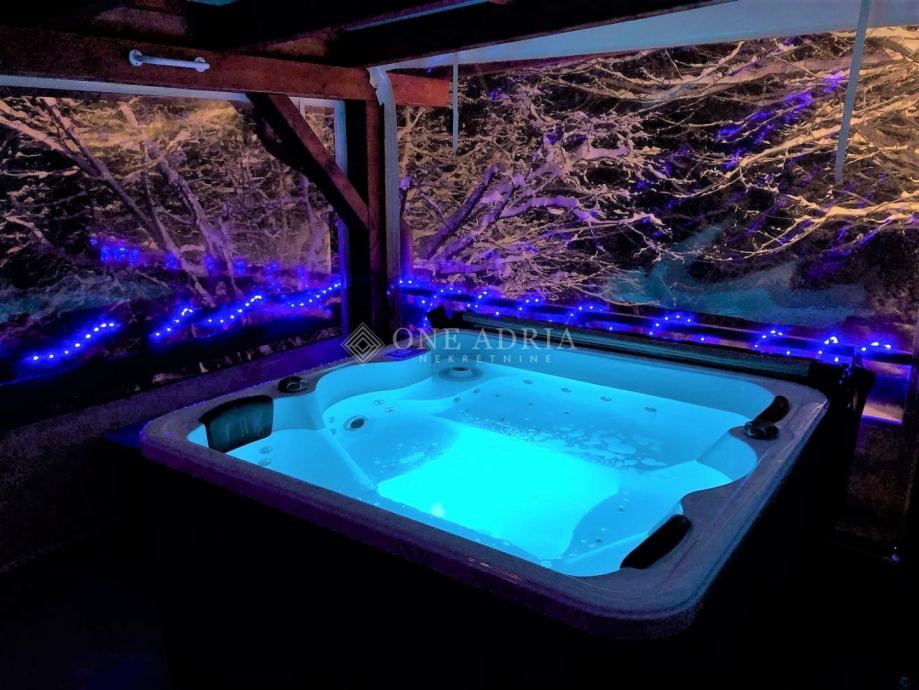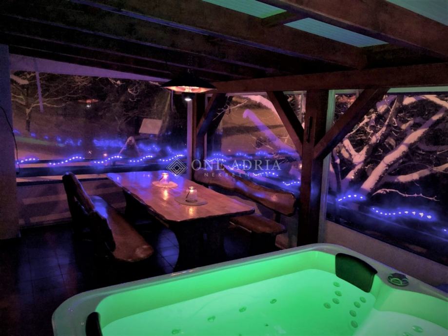 Na natkrivenoj terasi nalazi se masažna kada i veliki hrastov stol. Tijekom zimskih mjeseci terasa se zatvara prozirnim folijama i dodatno grije stropnom grijalicom. Grijač masažne kade ima dovoljno snage za zagrijavanje vode do željene temperature bez obzira na vanjske uvjete, što omogućuje korištenje tijekom cijele godine.