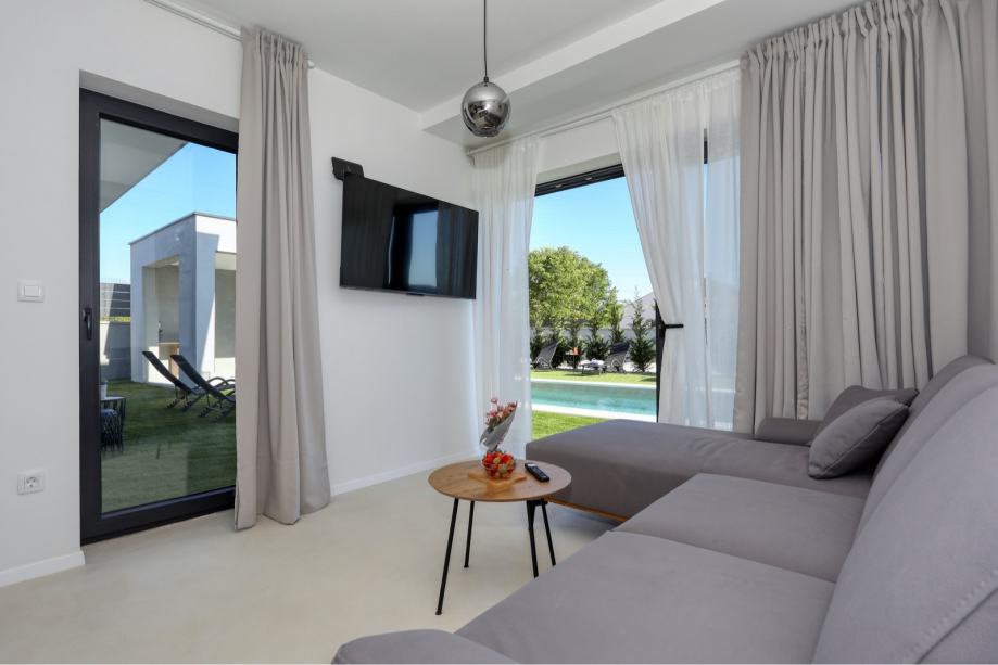 Iznajmljuje se villa u mjestu Poljica Brig, 10 km udaljena od Zadra. Villa ima 4 sobe i 3 kupaonice. Grijanje je na klima uredaje koji su u svakoj sobi i dnevnom boravku. U kupaonicama je podno grijanje. Dostupna je cijele godine. Cijena mjesecnog najma iznosi 3500 eura + rezije( voda, struja, cistoca). Kontakt 0997031459
