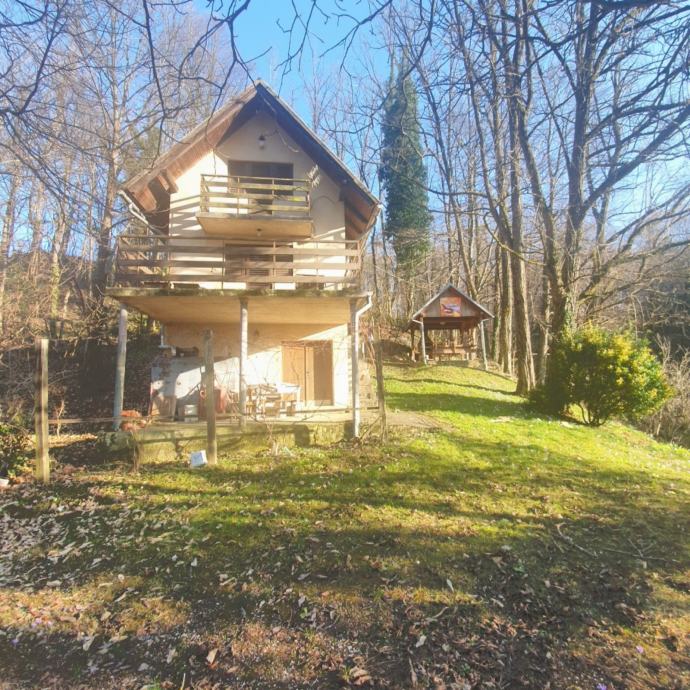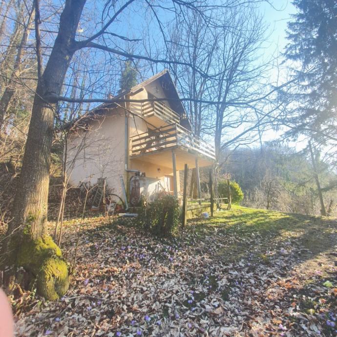 Kuća za odmor ili stanovanje nedaleko od Velike Gorice 10-15 min autom u lijepom prirodnom okruženju. .Sastoji se od dvodijelnog podruma,na prvom katu je prostor za stanovanje,hodnik,dnevni boravak,mala kuhinja,toalet i terasa sa lijepim pogledom.Potkrovlje nudi dvije pomanje sobe za spavanje. Prostor okućnice (750 hvati)je poveci sa vrtom,prostorom za roštiljanje,dj igralište i mjesto za parkiranje.Za detalje zvati (potrebna adaptacija)