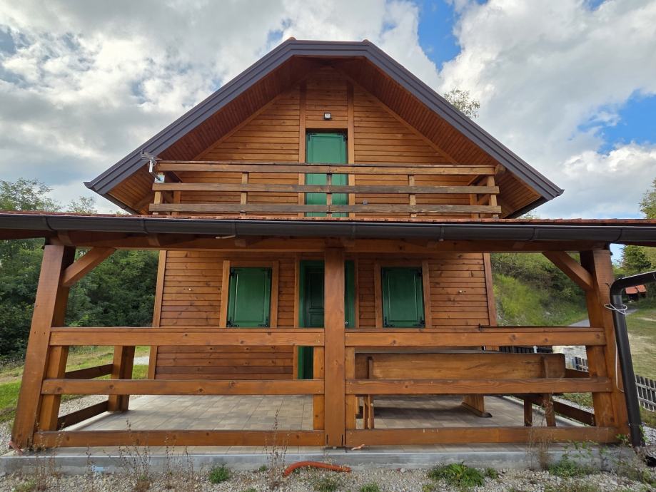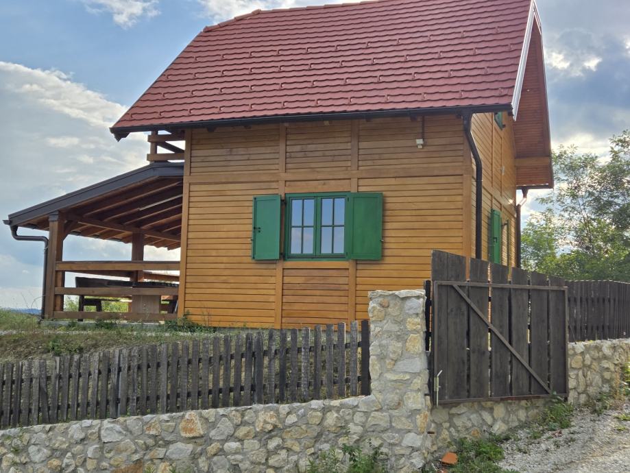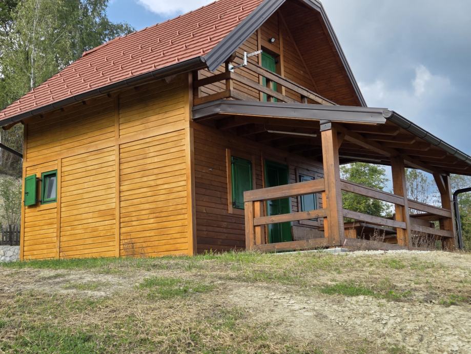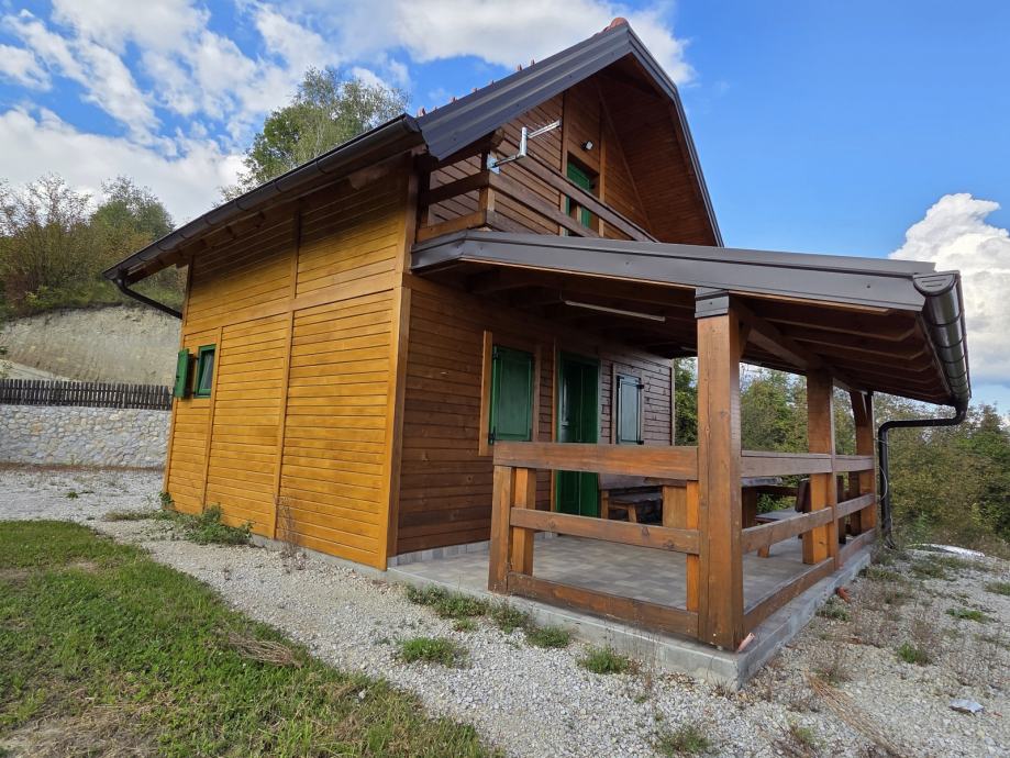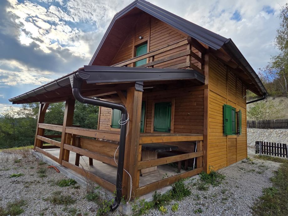 Kuća za odmor,drvena sa pripadajućom ograđenom okućnicom i spremištem.U potkrovlju spavaća soba,u prizemlju kuhinja sa blagovaonom i dnevnim boravkom te kupaonom.Moguća zamjena za nekretninu ili zemljište na moru ili u Istri