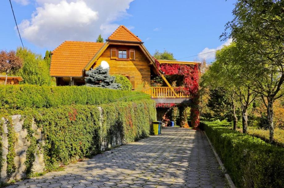 Kuća je na osami, građena klasičnim stilom, fasada 1/3 je obučena u kamen, a ostalo u drvo. Unutrašnjost je u potpunosti opremljena, rađena po mjeri od punog drveta. Okućnica je hortikultrno uređena, cijelo imanje ograđeno "živom ogradom" od graba i šimšira, prilazni put i nogostup oko kuće prekriven tlakavcima.