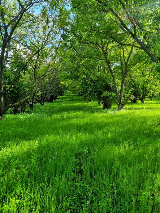 Okućnica površine 18730 m2 sastoji se od više povezanih čestica, a na jednoj od njih se nalazi 80 stabala oraha, 20 stabala jabuka, 10 stabala kruške i 2 trešnje.