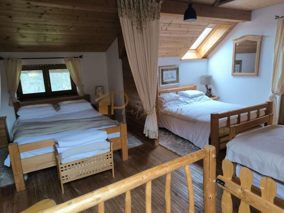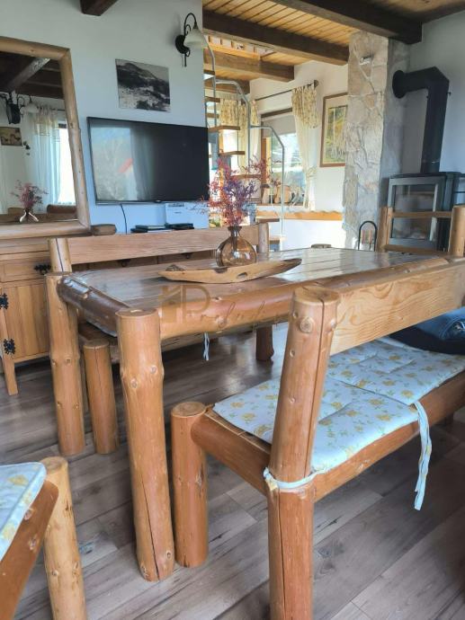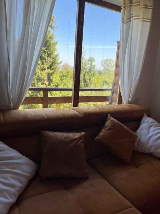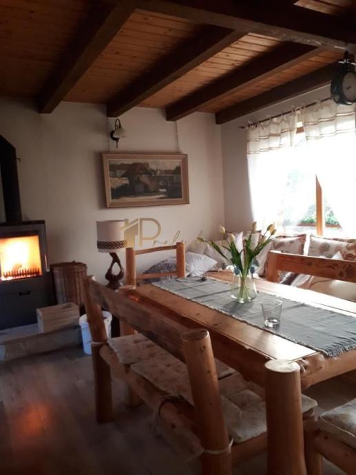 Ova šarmantna kuća od 76 m2 savršena je za jedinstveni bijeg od gradske buke. S jednom spavaćom sobom, možete uživati u intimnom ambijentu, dok su dvije kupaonice i toaleti idealni za udobnost i praktičnost. Za toplinu doma tu je peć na drva i nordijski radijatori. Svijetlost prostora je zagarantirana brojnim prozorima, balkonom i krovnim prozorima. Za pohranu drva, ležaljki, sportske i ostale opreme tu je i veliki podrum ispred kojeg se nalazi terasa sa roštiljom i dječje igralište.