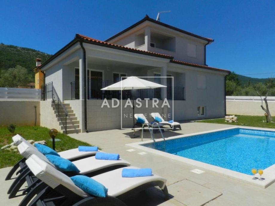 U malom pitoreskonom mjestu nadomak povijesnog grada Labina, smjestila se ova lijepa kuća za odmor od 182 m2. Izgrađena je na zemljištu od 620 m2 sa okućnicom od 492 m2.