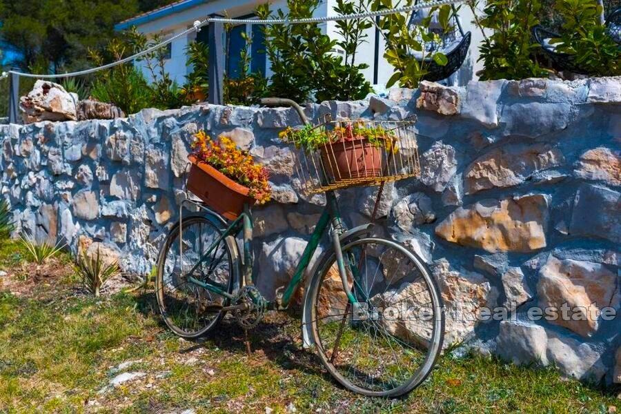 Kuća površine 45 m2 nalazi se na velikom kultiviranom zemljištu od 2700 m2, na kojem se osim raznolikog mediteranskog bilja nalazi bazen te igralište za mali nogomet.