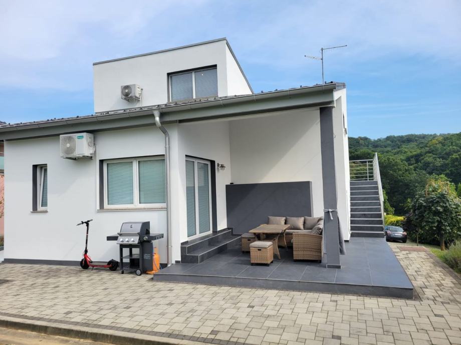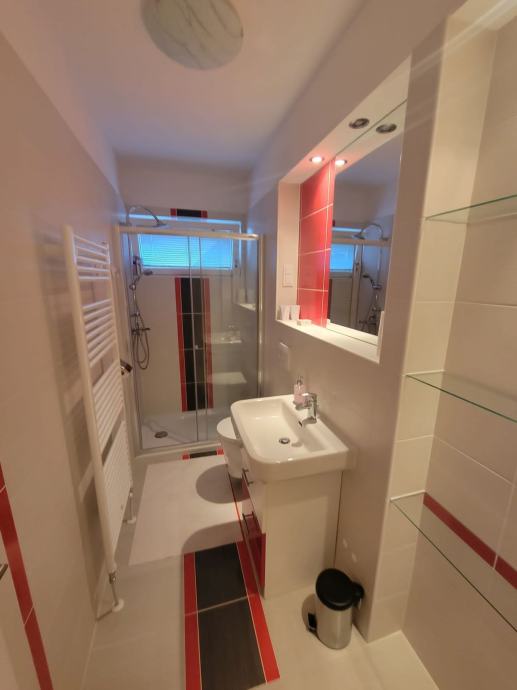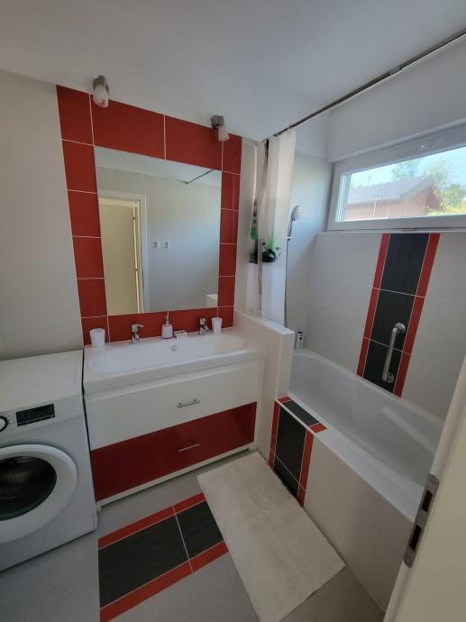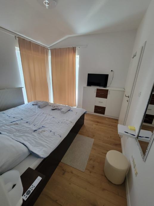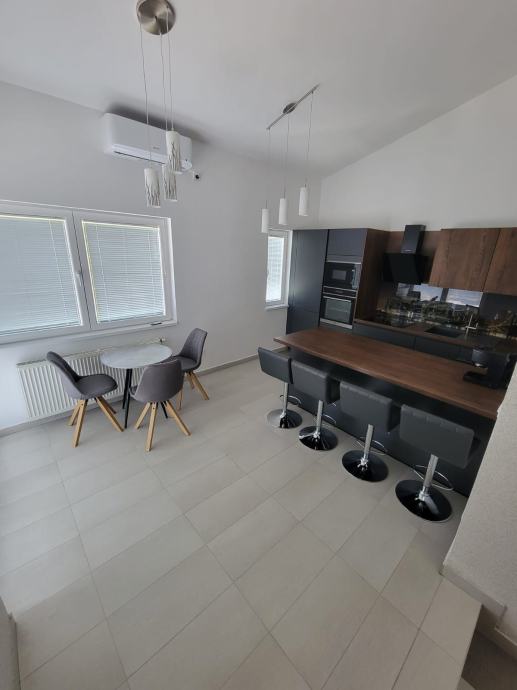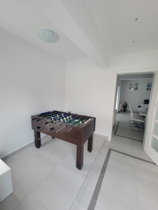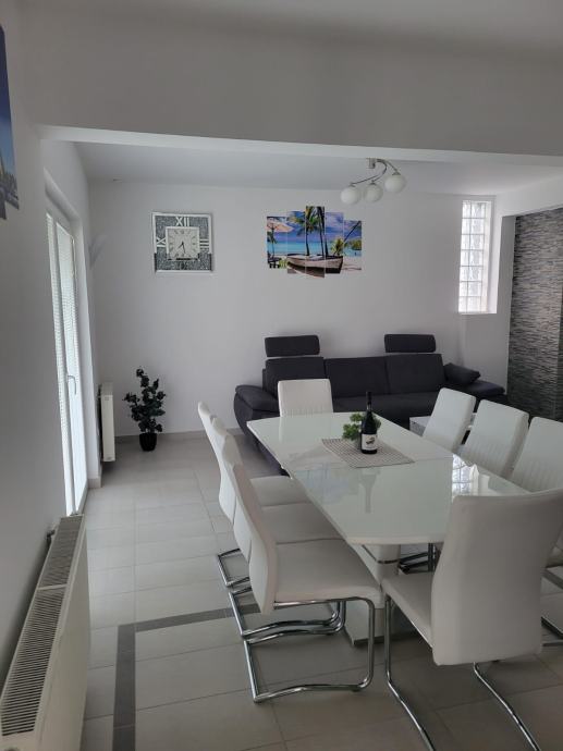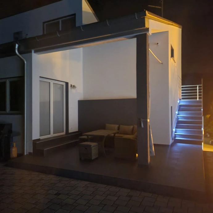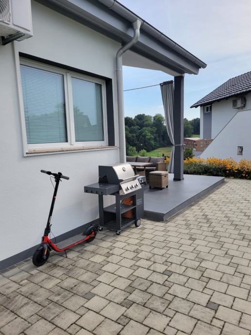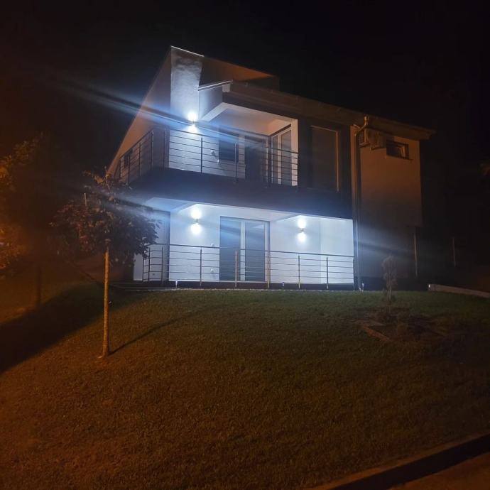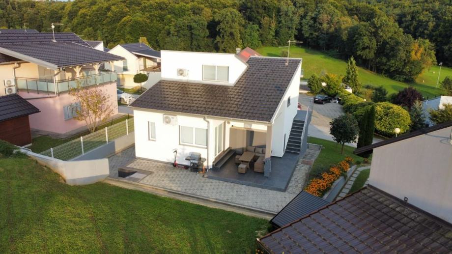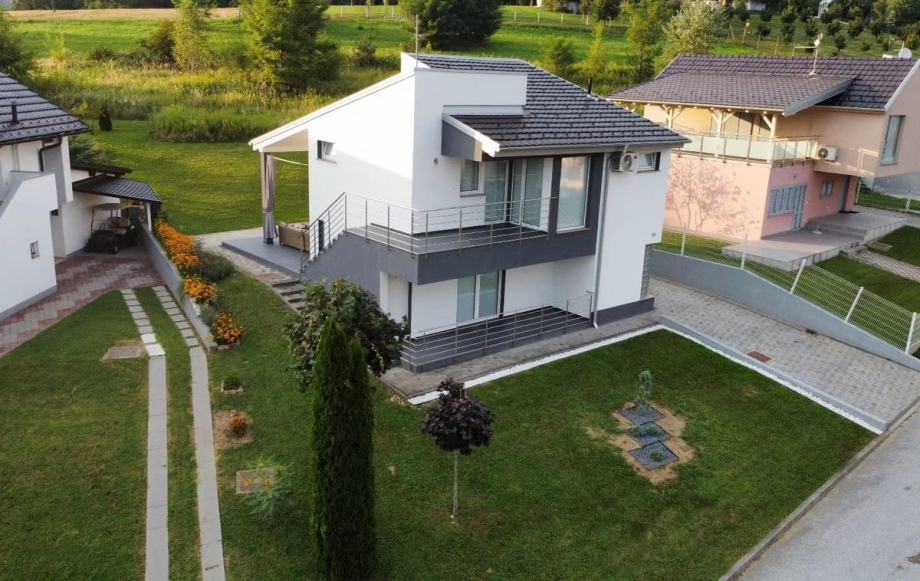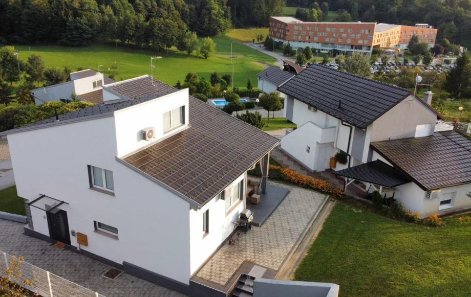 Vanjski dio okućnice je popločen tlakovcima a zelena površina je uređena i održavana cijele godine. Kuća se sastoji od prizemlja u kojem se nalazi ulazni prostor, kupaona, spremište, WC posebno, dnevni boravak iz kojeg se izlazi na natkrivenu manju terasu iz koje se pruža pogled na toplice. Iz hodnika se stepenicama dolazi na među kat na kojem je kuhinja i velika natkrivena terasa. Na katu kuće su dvije spavaće sobe sa vlastitim kupaonama i jedna soba bez kupaone, te manja terasa.