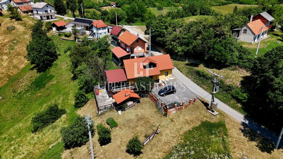 Kuća se prostire na tri etaže i smještena je na mirnoj, sunčanoj parceli s otvorenim pogledom na zelene brežuljke i šumu. Okružena mirom i zelenilom, nudi jedinstven osjećaj odmora tijekom cijele godine. Prilaz je asfaltiran, a na parceli se nalazi privatni parking za više vozila.