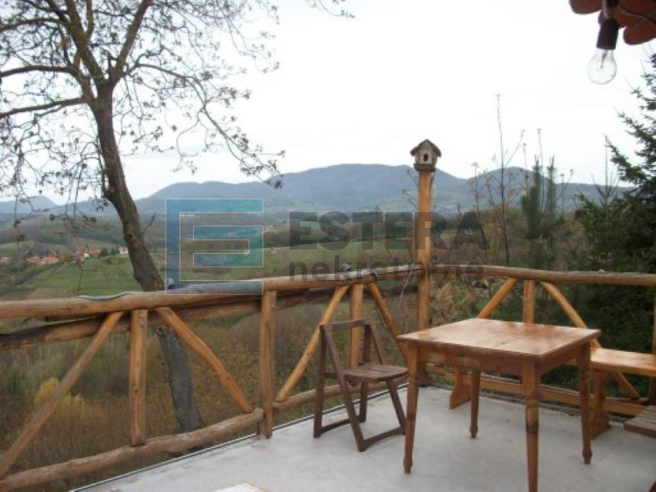 Prodaje se kuća za odmor površine 240 m2 + terasa od 45 m2 u srcu Hrvatskog Zagorja mjesto Mihovljan pored Krapine, na 500 m nadmorske visine s prekrasnim pogledom na zagorske brege i šume, na parceli od 2780 m2. Kuća se sastoji od podrumskog dijela u kojem se nalazi mali wellnes sa saunom i jakuzi kadom, prizemlja s tri kompletno opremljena studio apartmana s kupaonicom, kuhinjom i balkonom i još četiri dvokrevetne sobe, kapacitea gostiju do 20 ljudi. Kuća pruža mogućnost s nastavkom uhodanog turističkog poslovanja iznajmljivanja za razne svečanosti, domjenke, momačke, djevojačke s mogućnošću prihvata do 25 osoba. Prostor je adekvatno opremljen u prekrasnom rustikalnom stilu s unutarnjom terasom, velike krušnom peći, kompletno opremljene kuhinje, sobe za poslovne sastanke i rustikalanim caffe barom. Grijanje je centralno na lož ulje i klimu. Idealan način bijega od gradske buke, neometanog opuštanja u prirodi, miru i tišini okruženo zelenilom Hrvatskog Zagorja. Osiguran parking s minimalno deset parkirnih mjesta.