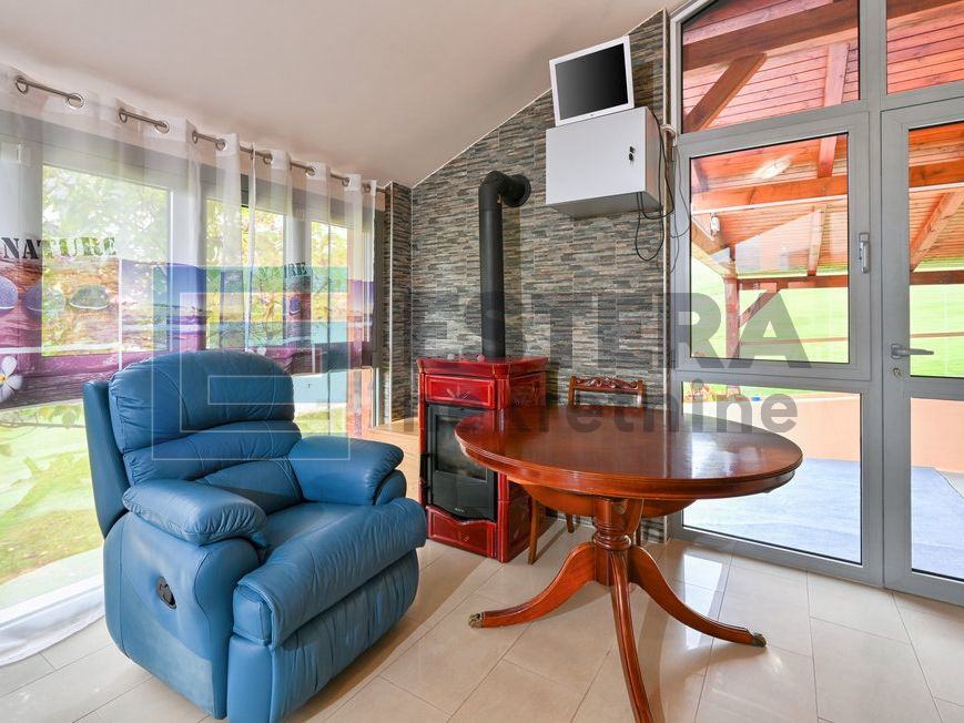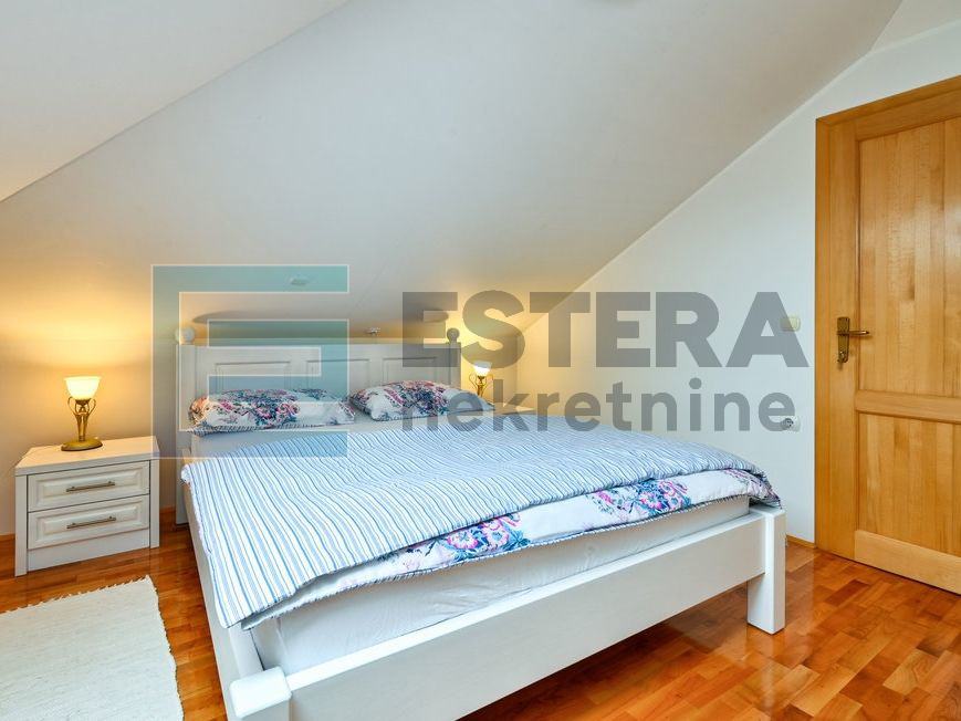 Svaki kat je klimatiziran, kompletno opremljen i namješten s vrhunskim aparatima i kvalitetnim namještajem. Podovi su obloženi parketom (trešnja) i kvalitetnom keramikom. Grijanje je etažno centralno plinsko i centralno na kruta goriva (pirolitička peć). Kuća pruža maksimalnu privatnost, savršena je za ljubitelje prirode i mirnog načina života, daleko od gradske buke.