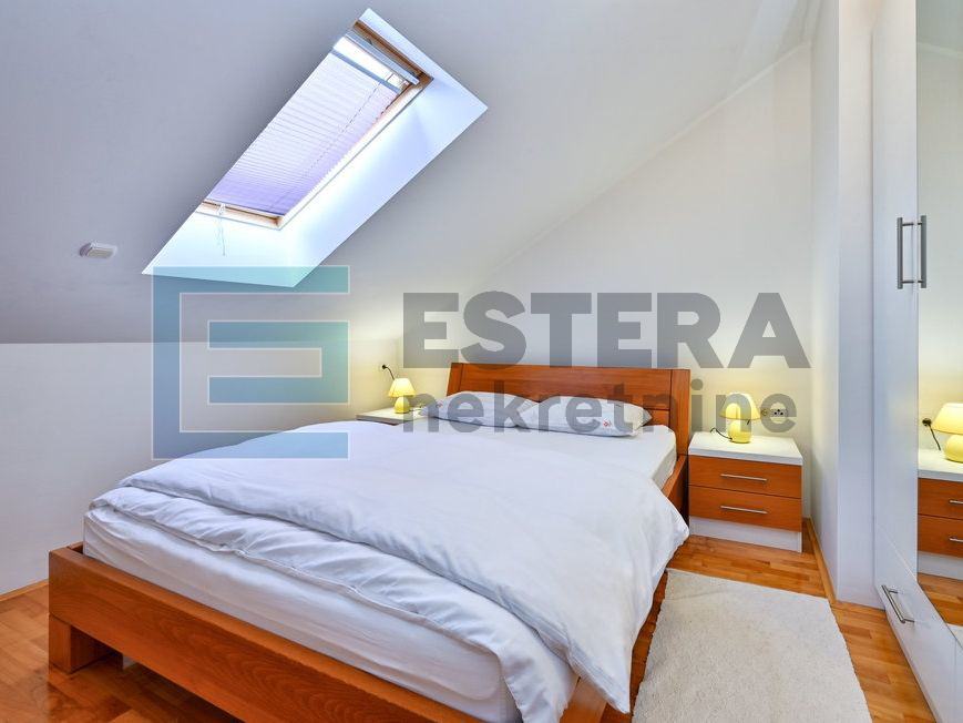Apartman iznad garaže pored kuće je moguće detaljno pregledati na linku za 3D virtualnu šetnju: