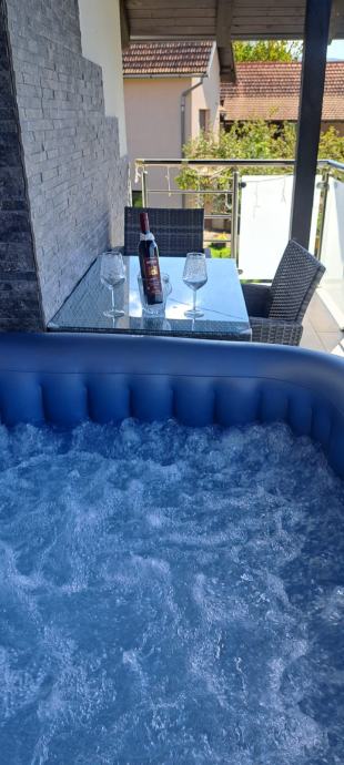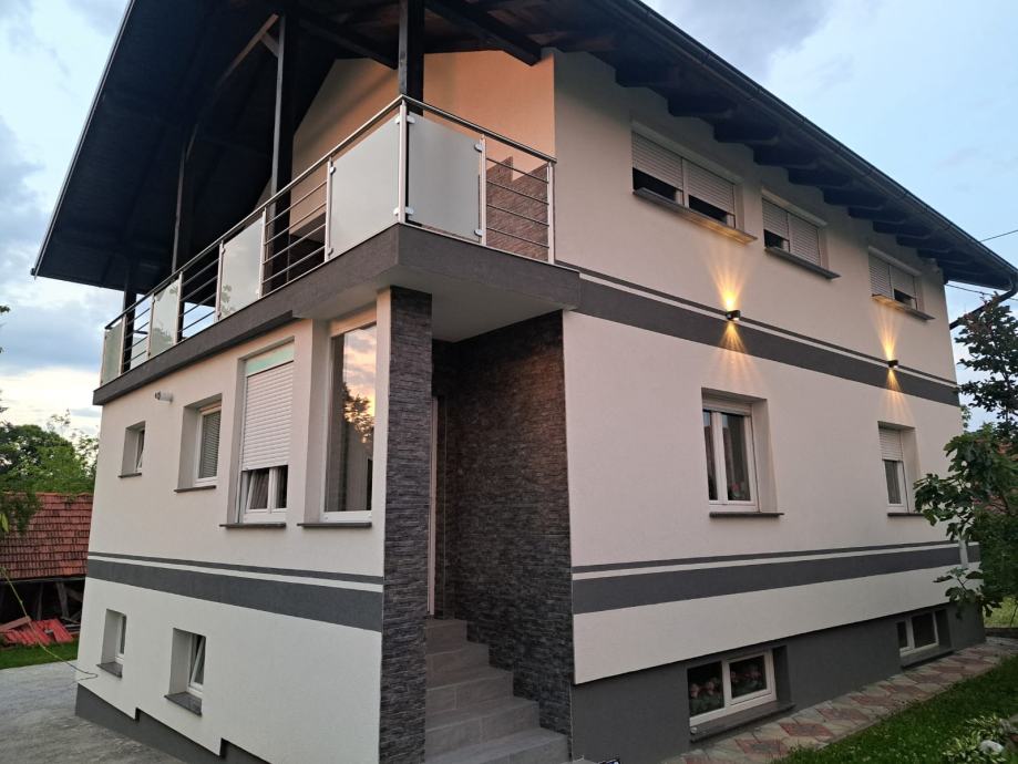 Prostor za iznajmljivanje je klimatiziran i sastoji se od 2 apartmana, a svaki može primiti 4 osobe, tj. zajedno za 8 osoba. Svaki apartman ima kupaonicu, sobu, dnevni boravak, kuhinju, predsoblje te natkriveni balkon u veličini 15 m2 sa stolom i stolicama koji može koristiti kao vanjska blagavaonica. A u sklopu balkona je ljuljačka, te jacuzzi za opuštanje. Gostima je dostupan besplatan WiFi. Na vanjskom dijelu kuće spojeno sa kućom nalazi se natkrivena terasa 50 m2 sa pečenjarom sa svom opremom za roštiljanjem, masivnim stolom i klupama za blagovanje. Kuća ima na vlastitom dvorištu parking, cvijetnjak, travnjak i voćnjak. U neposrednoj blizini nalazi se šumarak u kojem su moguće šetnje i uživanje u prirodi. Postoji mogućnost konzumiranja i nabave delicija koje se proizvode na selu tj. u Zagorskom kraju. Djeca imaju mogućnost igranja na travnatom dijelu ograđenog dvorišta.