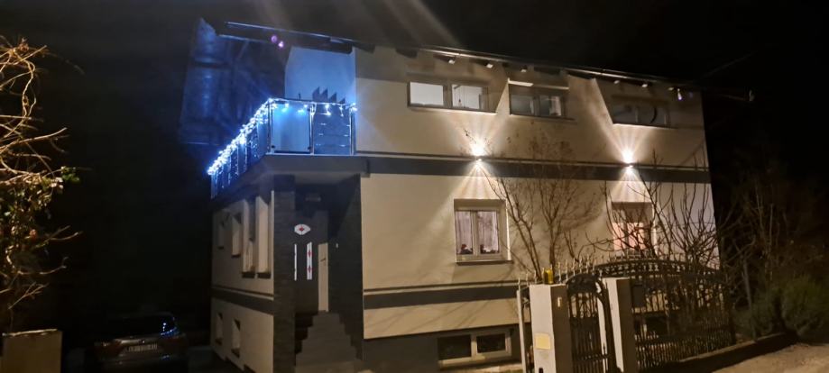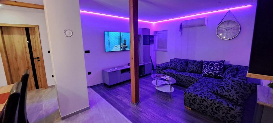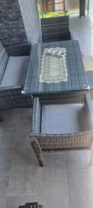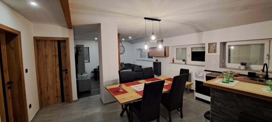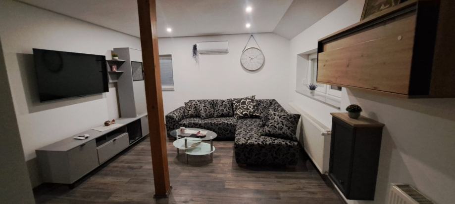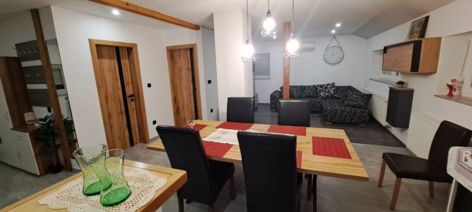 U cijenu moguće korištenje i sređenog prostora od 50 m2 u prizemlju sa upotrebom kuhinje i kupaonice, naravno tu se podrazumijeva istovremeno korištenje natkrivene terase vani sa pečenjarom. To sve zajedno na dvije etaže pogodono je za veću ekipu do 15 osoba.