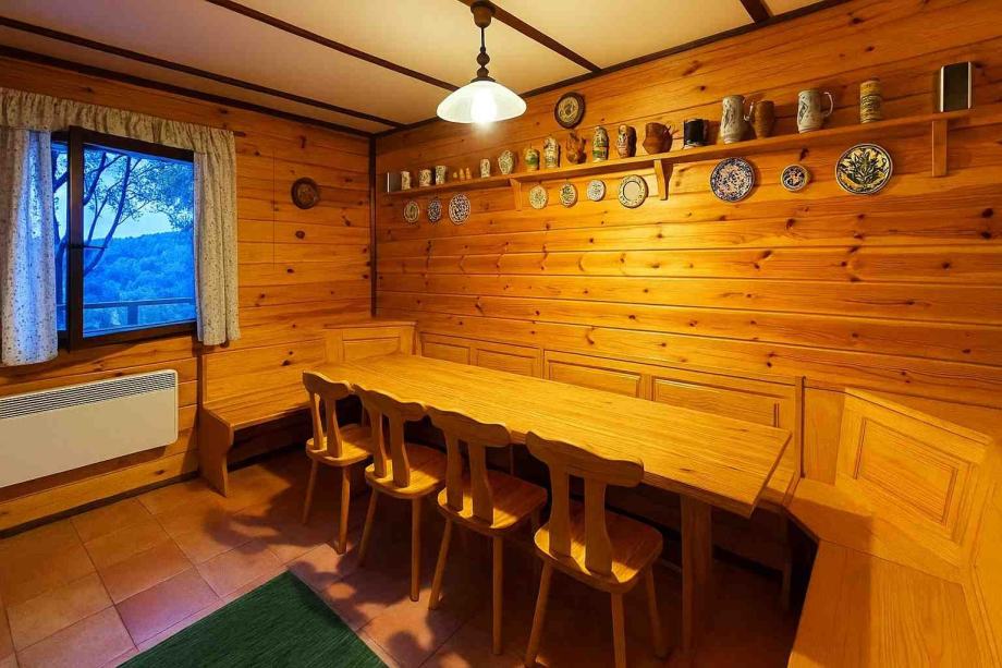 Kuhinja s blagovaonicom - 2 stola s klupama i stolicama za do 12 osoba,