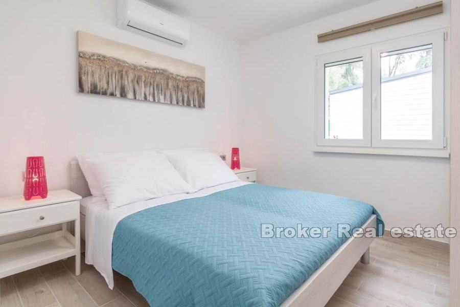 Za udobnost tijekom cijele godine, kuća je opremljena podnim grijanjem u svim prostorijama i tri klima uređaja.