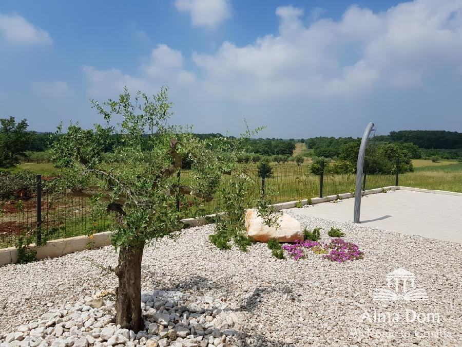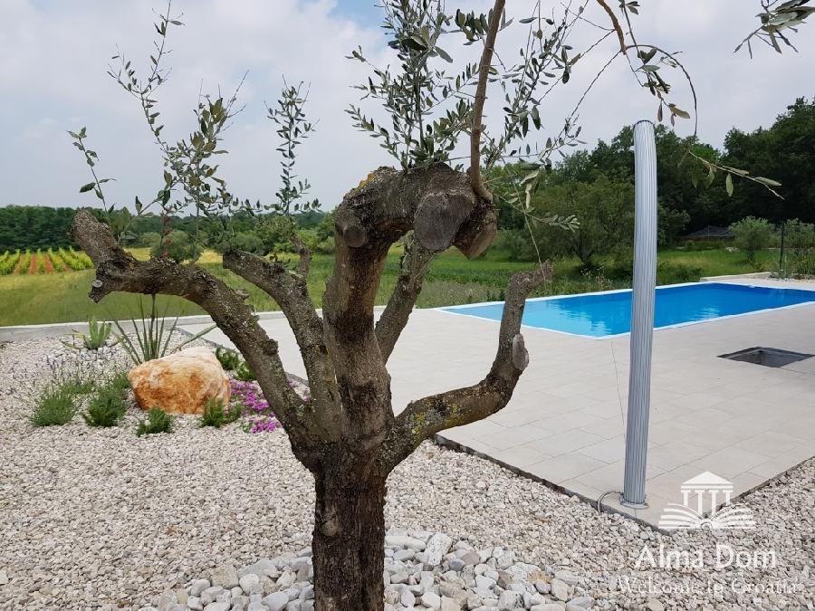 Okućnica je uređena sa autohtonim mediteranskim biljem, bazen od 40 m2 i roštilj.