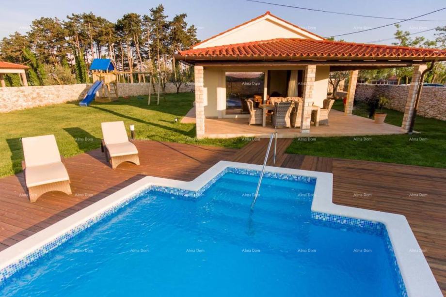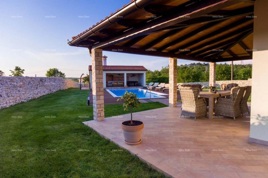 Na prostranom imanju nalazi se i bazen od 32 m2, udobna vanjska kuhinja, velika terasa sa stolom i stolicama uz bazen, ljuljačkama i toboganom za djecu, zasebnim wc-om i parkingom za nekoliko vozila.
