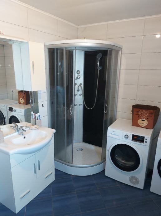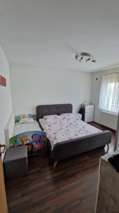 Kuća se sastoji od 80m2 uređenog stambenog prostora i 50m2 potkrovlja trenutno u roh-bau fazi.