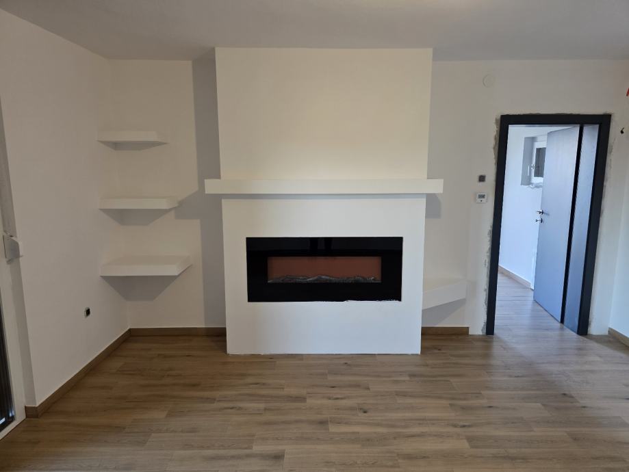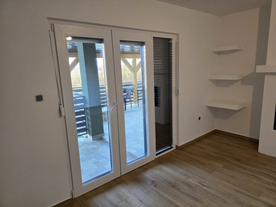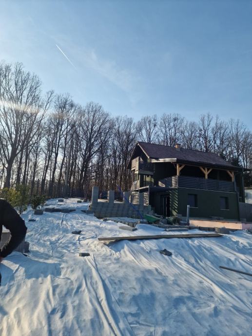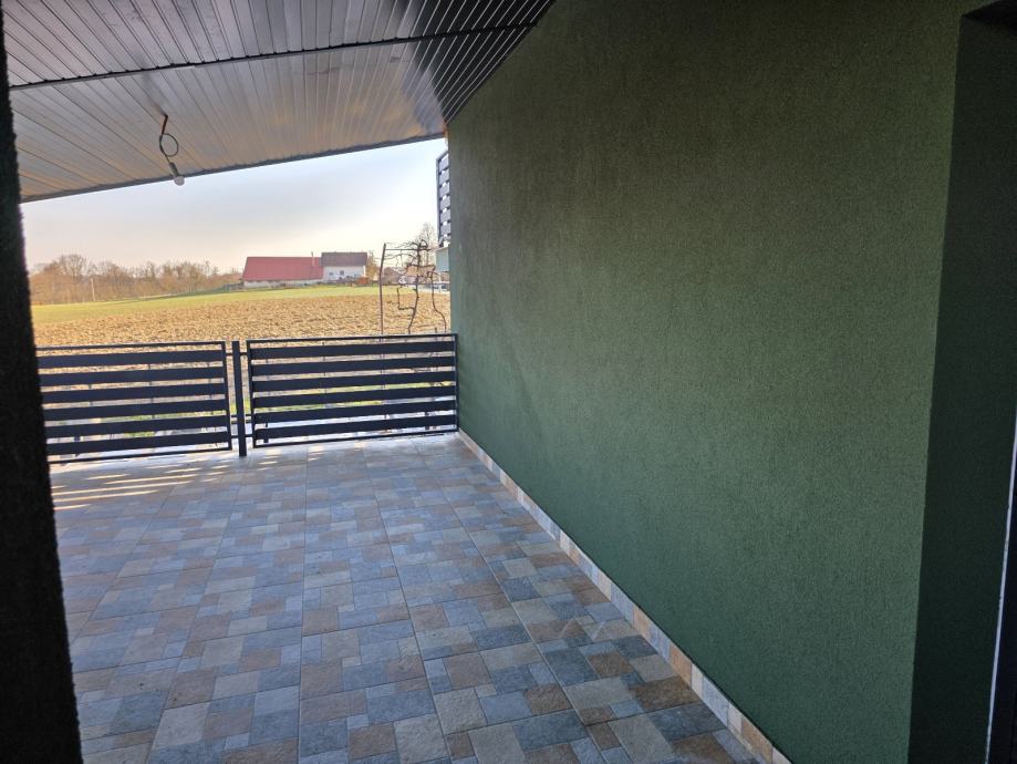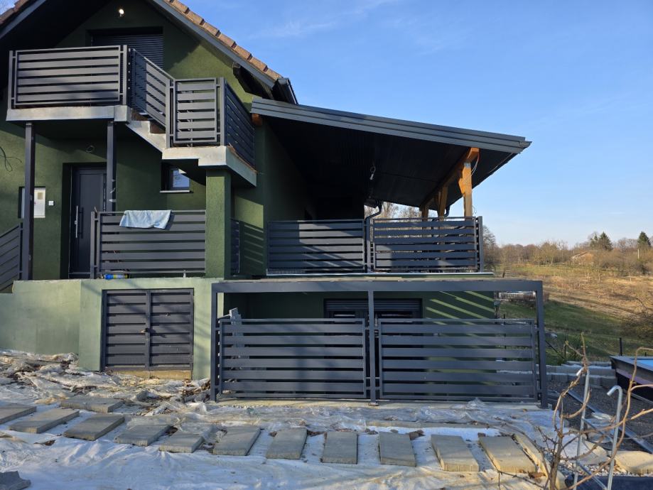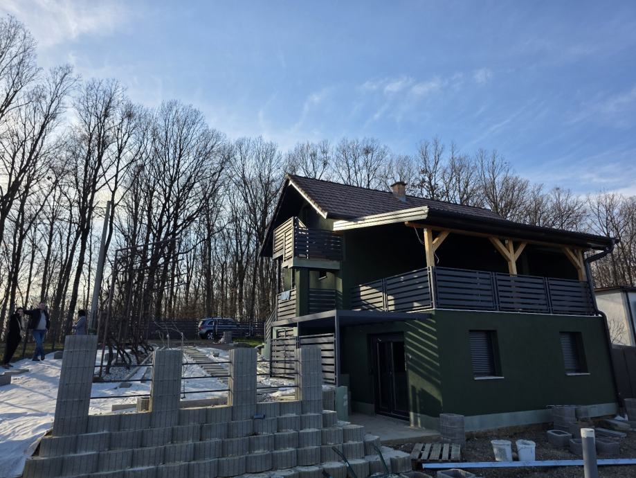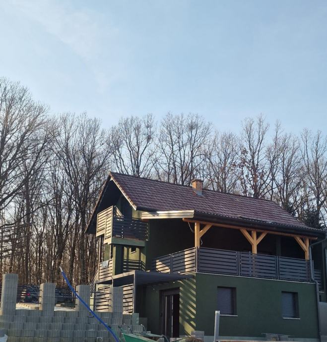 Grijanje je etažno plinsko centralno podno, a kuća ima i klimatizacijski sustav. Prodaje se nenamještena, što znači prazna i sprema za vlastito uređenje. S balkona na gornjoj etaži pruža se širok pogled na okolno zelenilo i polja koji su vidljivi i na fotografijama.