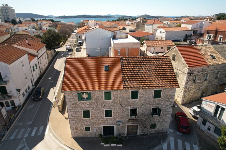Kuća katnica u poslovnom centru Vodica, pogodno za rekonstrukciju i adaptaciju prizemlja u poslovnu namjenu a druga dva kata u stambenu..Investicija