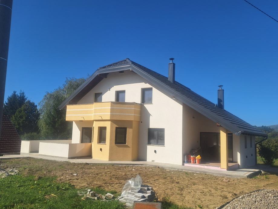 Novi Marof. 1km od centra -Ključ-Vrtna ulica. Na ljepoj i mirnoj lokaciji. Nova kuća ,useljenje 1.12. 2025. Kuća se prodaje ključ u ruke sa uređenim dvorištem okućnicom te parkingom. 2 Minute od centra Marofa 15 minuta od centra Varaždina te 30 minuta od izlaza sa autoputa -Zagreb istok. Prizemlje veliki dnevni boravak sa blagavaonicom i kuhinjom , hodnik ,ostava , kupaonica sa wc ,spavaca soba te jos jedna soba /tehnička ili radna/.Stepeniste .Kat-tri spavaće sobe, kupaona sa wc te balkon. Tavanski prostor pod kosinom. 1000m2 okucnice sa 4 uređena parking mjesta te dvije terase. Podno plinsko grijanje , dvije klima jedinice te mogucnost grijanja na kamin. Fasada stiropor 15 cm. Namještene kupaone. U postupku je ishodovanje uporabne dozvole. Kupac ne plaća agencijsku proviziju.