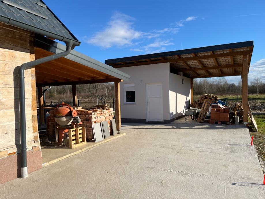 U dvoristu se nalazi dodatna prostorija te natkriveno parkirno mjesto.