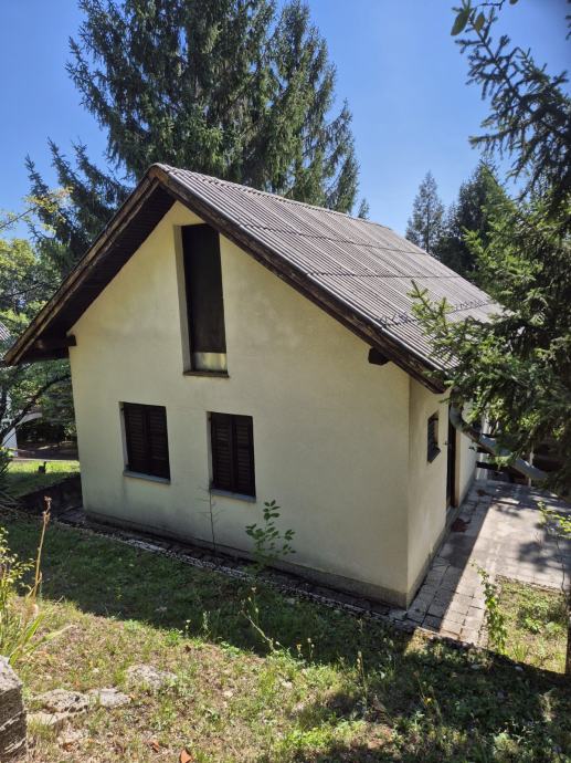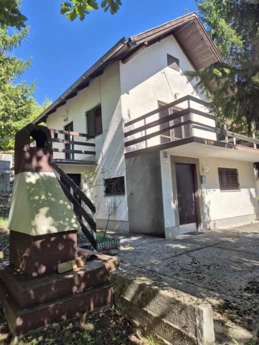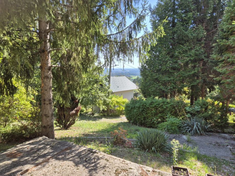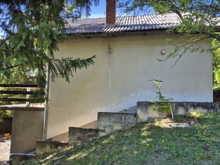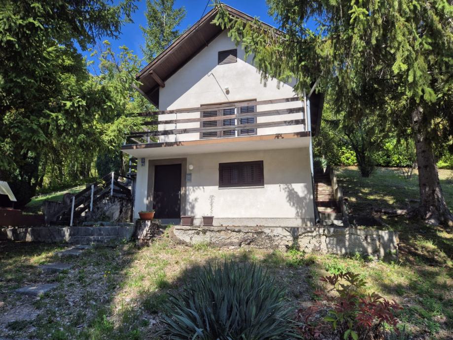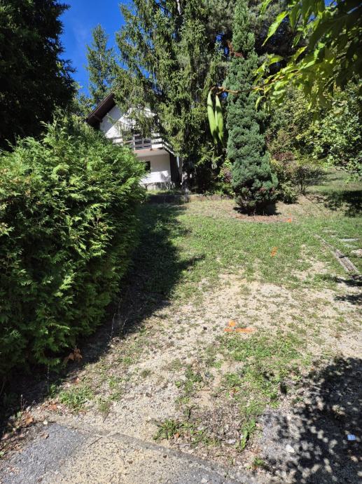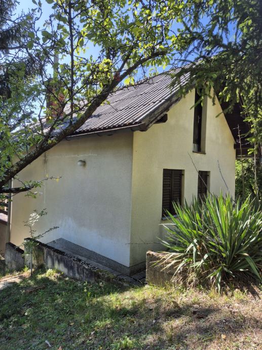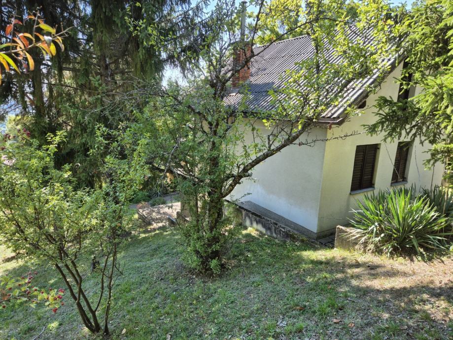 Prodajem kuću smještenu na prostornoj okućnici okruženoj visokim stablima i gustim zelenilom. Sa fotografija je vidljivo da se radi o katnici bijele fasade s balkonom, koja je gotovo skrivena u zelenilu - čempresima, četinjačama i raznim ukrasnim biljkama.