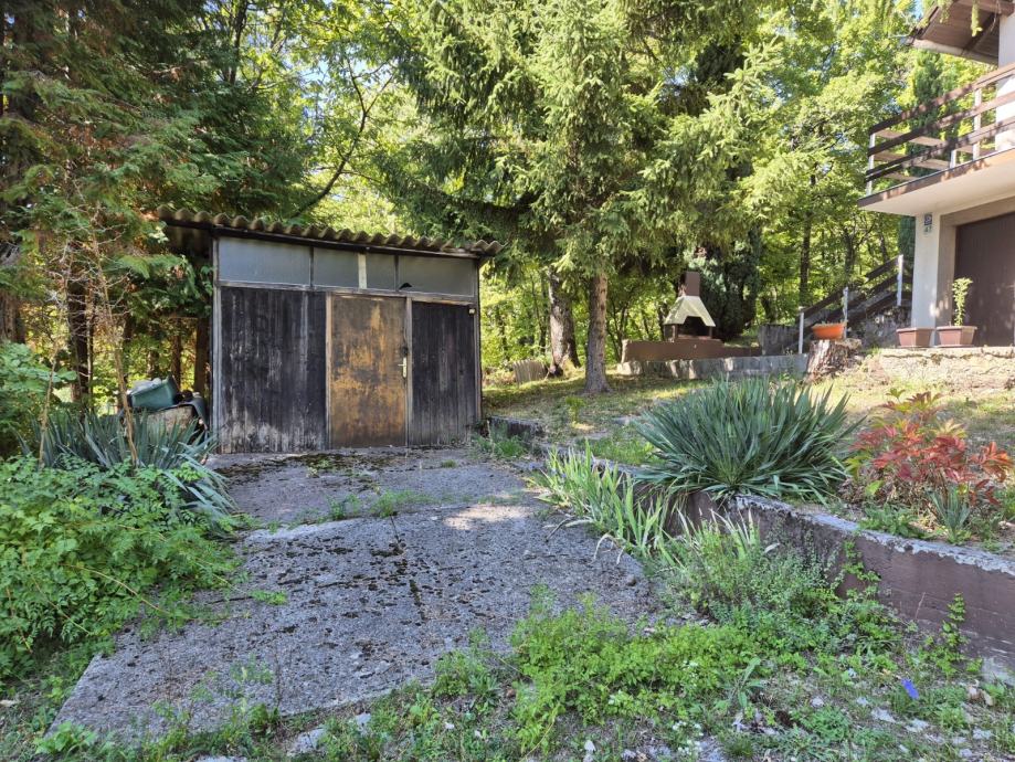 Okućnica je velika i pruža dosta prostora oko kuće. Na dvorištu se nalazi manji drveni gospodarski objekt koji može poslužiti kao spremište za alat ili vrtnu opremu. Dio dvorišta je popločan, a ostatak je pod travnjakom.