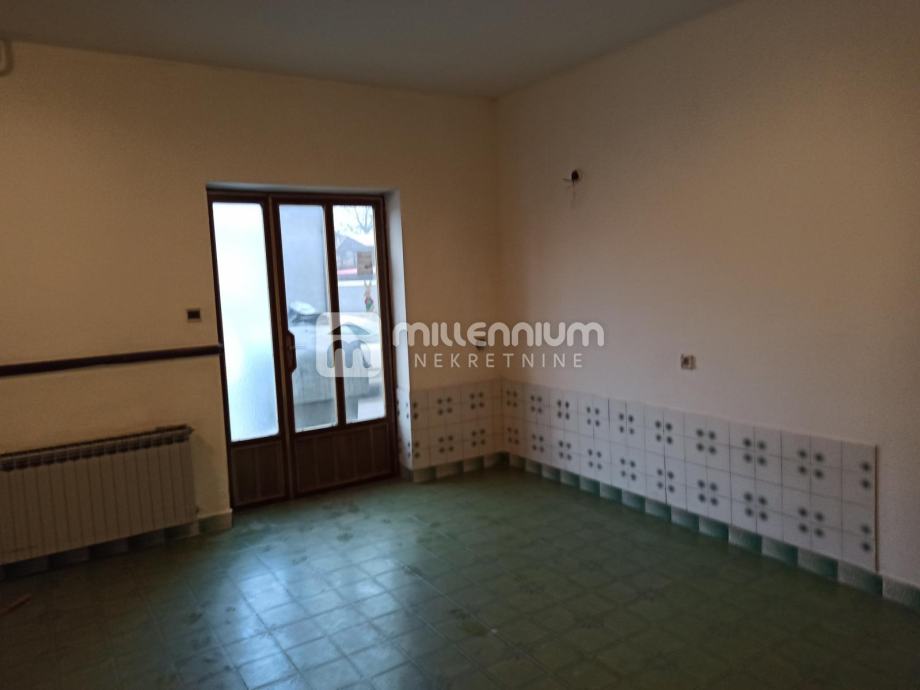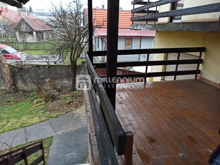 Kuća od 320m2 smještena u samom centru Ogulina u blizini svih sadržaja. Razvedena je na četiri etaže sa stambenim prostorom, višenamjenskim poslovnim prostorom od 80m2 u prizemlju i podrumom od 50m2 u suterenu. Na 1. katu nalazi se 2-sobni stan s db, a u visoko potkrovlje od 70m2 je u roh bau izdanju. Grijanje je centralno na naftu. Ima pripadajuću garažu od 15m2 te 381m2 okućnice s pomoćnim objektom od 44m2.