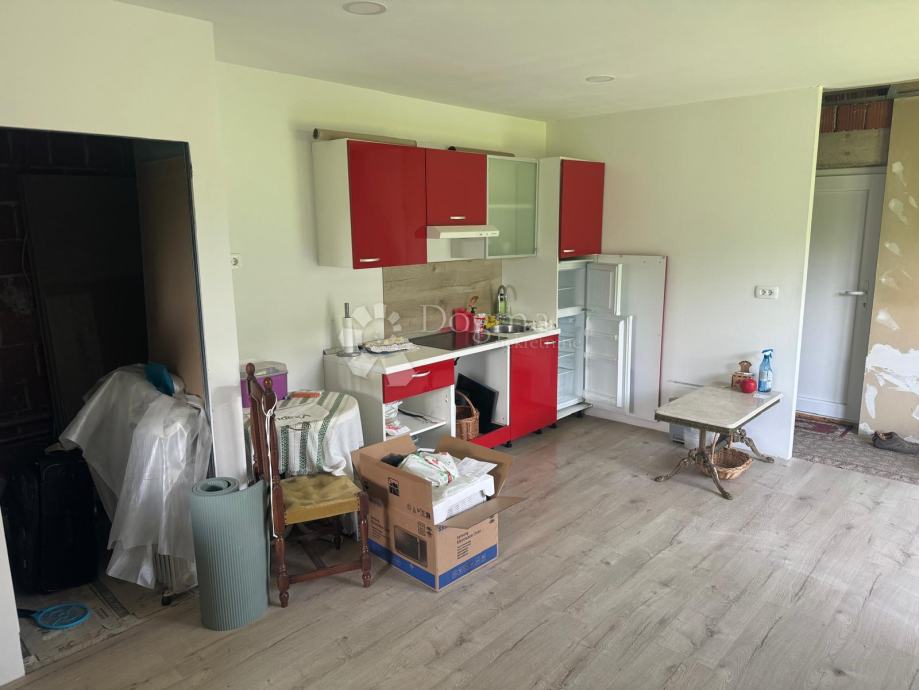 Kat: Zaseban WC, kupaonica, dvije spavaće sobe (treća u izradi), terasa s prekrasnim pogledom na prirodu.