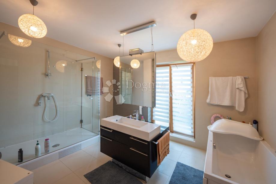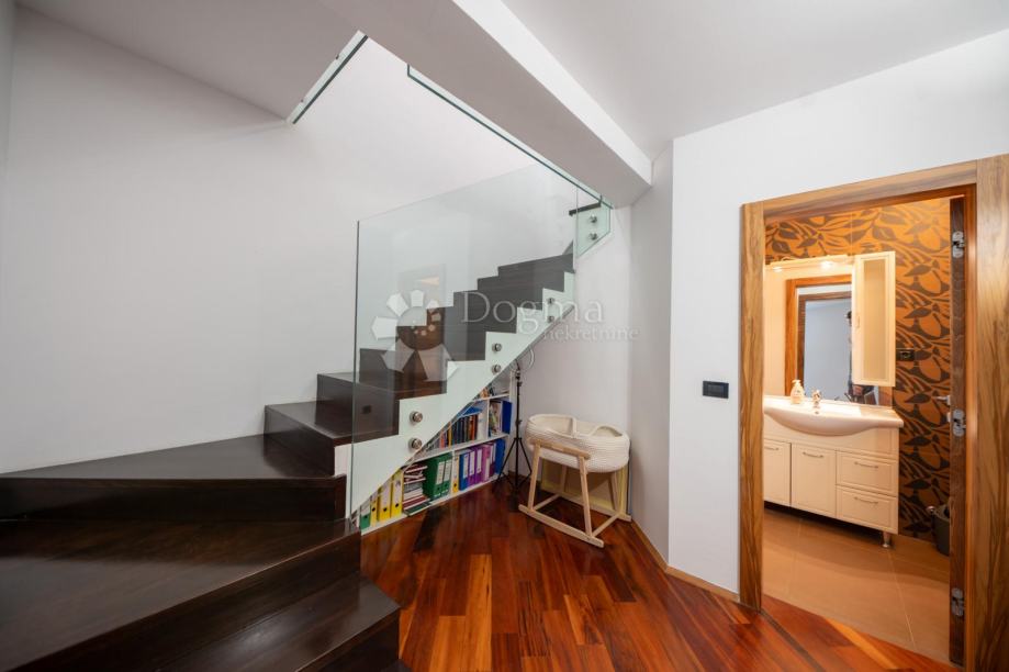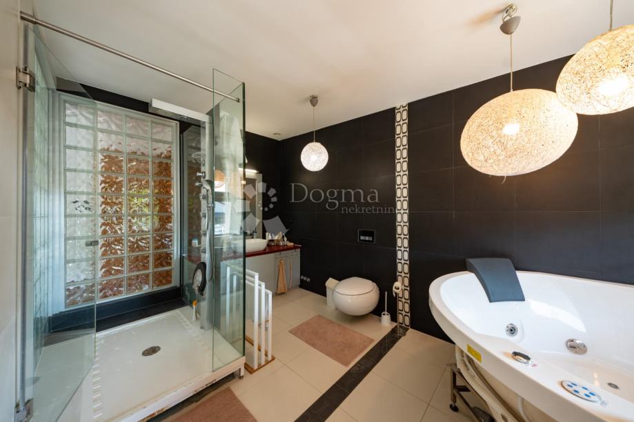Kuća obuhvaća jedan prostrani stan površine 339 m², drugi stan površine 110,05 m² te treći stan površine 90,80 m², uz dodatni poslovni prostor površine 106,90 m². Glavni stan raspolaže s tri prostrane spavaće sobe koje pružaju maksimalnu udobnost, pri čemu glavna spavaća soba ima vlastitu luksuzno uređenu kupaonicu s jacuzzijem i tuš kabinom. Na katu se nalazi dodatna elegantna kupaonica opremljena kadom i tuš kabinom, dok se u prizemlju nalazi svijetao open space dnevni boravak sa stilskim kaminom i mogućnošću grijanja na drva, moderno uređena kuhinja te gostinjski WC.