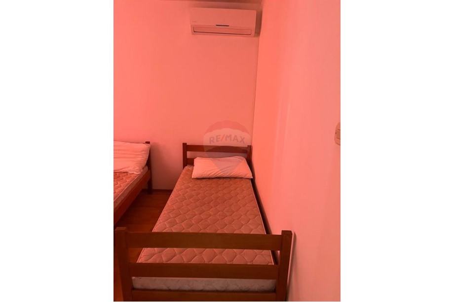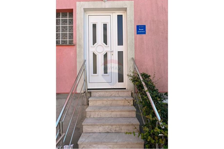 Poseban ulaz na kat – vanjske stepenice. Etaža odvojena na više apartmanskih jedinica, soba i dva mala apartmana.