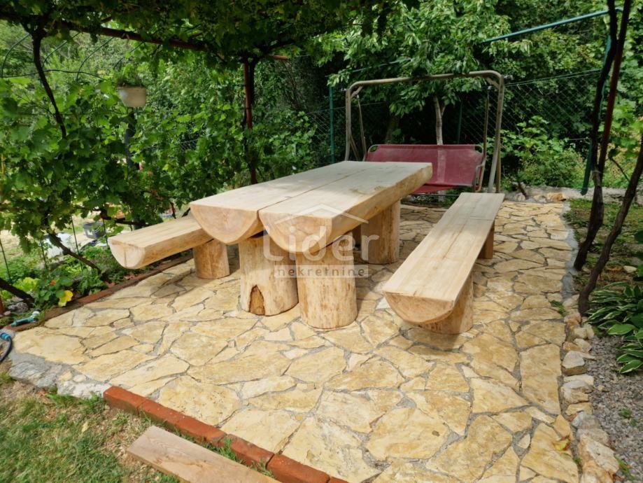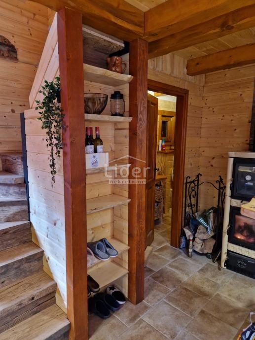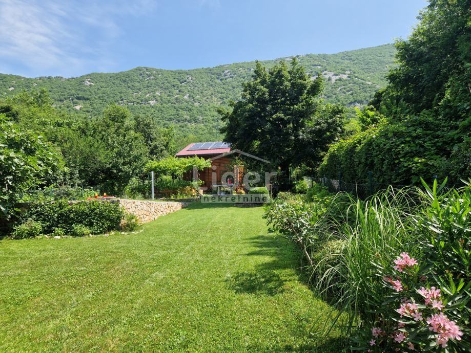 U zaleđu Jadranova, prodajemo samostojeću vikendicu kompletno izraženu od drvenih balvana sa 2 spavaće sobe, dnevnim boravkom, kuhinjom, ostavom, kupaonom. Sastoji se od prizemlja i kata veličine 68m2 na okućnici od 1000m2 prepunog sadržaja. Zeleni objekt. Fotonaponski sustav proizvodnje struje, spremnik za vodu... Grijanje na drva i klimu. Izgrađena 2019.godine sa svim potrebnim dozvolama. Objekt je legaliziran te ima mogućnost priključka na struju i vodu.