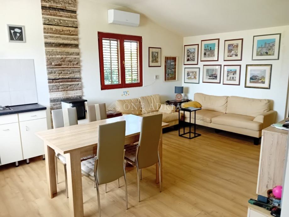 Kuća je izgrađena 2010. godine, a temeljito renovirana 2024. godine. Upisana je kao stambena nekretnina s urednom dokumentacijom te ima priključke za vodu i struju. Unutrašnjost se sastoji od prostranog dnevnog boravka s kuhinjom, spavaće sobe, ureda, kupaonice i ostave. Natkrivena terasa s ljetnom kuhinjom pruža dodatni prostor za boravak na otvorenom, a uz nju se nalazi zidani roštilj.