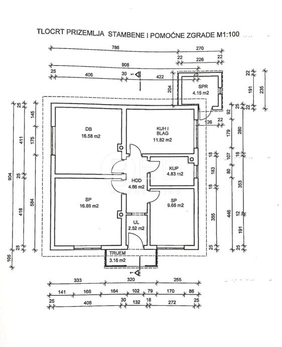 Ukupna površina parcele (s okućnicom): 299 m²