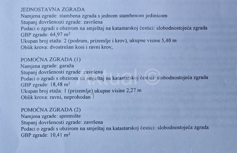 Kuća se sastoji od prizemlja i podruma koji ima površinu cca. 12 m2.