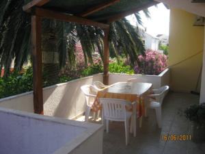 U prizemlju se nalazi stan sa dvije spavaće sobe, dnevnim boravkom, kuhinjom, spremom i dvije kupaonice. Iz jedne sobe se izlazi na balkon a iz druge na prekrasnu terasu prekrivenu vinovom lozom .